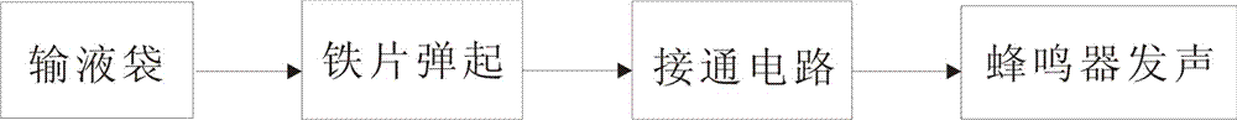The contact iron plate105 produce downward pressure, make circuit part form open circuit, and along with the carrying out of transfusion, the liquid in infusion bottle or transfusion bag gradually reduces, and its gravity reduces,