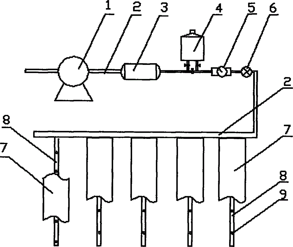 As shown in Figures 1 and 2, the utility model includes a water pump 1, a water delivery main pipe 2, a filter 3, a water meter 5, a switch 6, a