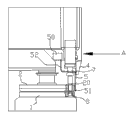 Generally see Fig. 1 for the punching machine structure of plate body punching, mainly comprise patrix 2 and counterdie 1, the drift 20 that is provided for punching in patrix 2 is provided with push rod 7 above drift 20, and push rod 7 connects in power-equipment.Counterdie is positioned at the drift lower position mould 8 is set, and when plate body was punched, plate body started push rod 7 and presses down drift, so that plate body is got through hole between drift and mould by between drift 20 and the mould 8.When but this structure was carried out punching for thinner plate body, the waste material that stays during punching remained in and causes easily the punching edge to enlarge on drift 20 or the counterdie mould 8, perhaps edge perk, and easily so that plate body produces impression.Therefore be necessary to make improvements.