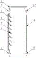 图中所示为:1-通风道框架;2-室外侧上风门;3-室外侧钢化双层玻璃罩;4-可转动式集热蓄热片;5-集热层;6-蓄热层;7-室外侧下风门;8-室内侧下风门;9-室内侧钢化双层玻璃罩;10-室内侧上风门。 The picture shows: 1-air duct frame; 2-upper air door on the outdoor side; 3-tempered double-layer glass cover on the outdoor side; 4-rotatable heat-collecting and heat-storage fins; 5-heat-collecting layer; 6-heat storage Layer; 7-outdoor lower air door; 8-indoor lower air door; 9-indoor tempered double-layer glass cover; 10-indoor upper air door.