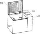 在其他的实施例中,在上述各实施例的基础上,进一步的,所述家庭洗碗机还包括第二壳体107,水槽109装设在所述第二壳体107内,且所述第二壳体107装设在所述第一壳体102上,该第二壳体107、第一面板101、第二面板105与第一壳体102形成一个整壳体,对碗架108、水槽109、喷水板106、主线路板110、超声波振子形成保护。