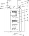 As shown in Fig. 1 to 7, a kind of pair of main shaft honing machine, mainly consists of parts such as left main spindle box 1, right main spindle box 2, main shaft 3, honing head 4, horizontal rotating disc 5, turntable 6, lathe bed 7 and feed mechanisms.A honing head 4 is equipped with respectively wherein, on described left main spindle box 1 and right main spindle box 2, a main shaft 3 is vertically housed respectively, and the lower end of every main shaft 3, and the structure of honing head 4 and all identical with existing structure with the mounting structure of main shaft 3.And remaining is that description scheme is identical with existing pair of main shaft honing machine for the utility model, does not repeat at this, difference is as described below.