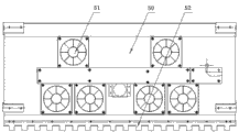 ⑴大传滚筒气垫托纸装置Ⅱ5与大传滚筒气垫托纸装置Ⅰ6上分别安装数量不等的工频流风机。