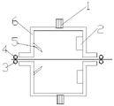 如图1所述的一种纺织品烘干机,包括对称设置的上下箱体,所述的对称设置的上下箱体之间的形成有一个进料通道,在所述的进料通道的左右两侧各设置有一对用于输送纺织品的传动辊4,在所述的上下箱体的内壁上均设置有加热装置2,在上下箱体上各设置有一个鼓风机1和风道6,在所述的上下箱体的风道6上均设置有出风口5。