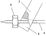 图中显示,两根牵引杆3的下端有卡槽8,横针4的两端分别嵌在两根牵引杆3下端的卡槽8中。横针4的两端有螺纹,螺母9旋在横针4的两端的末端,螺母9顶在两侧牵引杆3卡槽8的外侧,可以通过拧紧或松开螺母9在横针4的位置调整牵引杆3与横针4接触的角度。