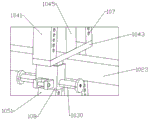 所述第一矩形管(1041)和第二矩形管(1051)上均套设有一导轨滑套(108),导轨滑套(108)上设有与定位孔(107)相适配的一对第二定位孔(109),一插销(1030)穿过一对第一定位孔(107)和一对第二定位孔(109)将导轨滑套(108)固定,导轨滑套(108)的侧壁上设有一U形块(1010),U形块(1010)的内部设有一横杆(1011);