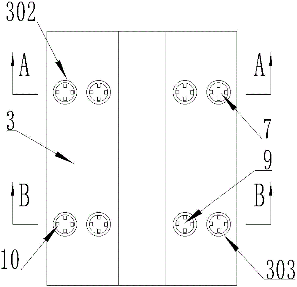 3、第一气垫;301、第一充气口;302、第一通孔;303、第二通孔;3. The first air cushion; 301, the first air inlet; 302, the first through hole; 303, the second through hole;