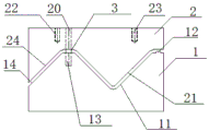 The upper die 2 is provided with a first screw hole 22 and a second screw hole 23, and the press is connected with the upper die 2 through the first screw hole 22 and the second screw hole 23.