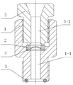 其中,1为阀体,1-1为通孔Ⅰ,2为膜片,3为旋塞,3-3为通孔Ⅱ,4为密封垫,5为O型密封圈。