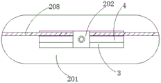 7. The stirring and mixing device for paint production according to claim 1, wherein; the stirring tank (1) is formed by splicing a rectangular tank body in the middle and semicircular tank bodies on two sides, and the sliding table (202) is positioned on the central line of the two semicircular tank bodies.