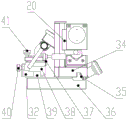 进一步的,所述的锁紧机构的竖直板与杠杆表夹紧旋钮9相连,锁紧机构的水平板安装在测量表微调板10上,测量表微调板通过微调螺丝41和杠杆微调弹片37与第二滑块相接触。所述的杠杆微调弹片分别通过螺纹连接第二滑块与测量表微调板。所述的第二滑块的侧部还通过预紧螺丝40连接预紧钣金件32,预紧钣金件的下部贴近第二滑轨。所述的锁紧机构设有一个对称的竖直板,锁紧机构还连接第二测量杠杆表11。所述的第二滑轨设在底板上,第二滑轨的一端装有限位块7。锁紧机构为U型件,U型件的水平板固定在测量表微调板上,U型将的竖直板向外延伸为空心杆件,该空心杆件的一个空腔中固定有测量杠杆表的支撑杆件,该支撑杆件通过位于空心杆件另一个空腔中螺丝进行锁紧,螺丝与杠杆表夹紧旋钮相连接。
