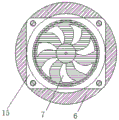 one side of the case 1 is connected with a cover plate 8, a hinge 9 is connected between the cover plate 8 and the case 1, vent holes 10 are distributed in the cover plate 8, the cover plate 8 and the case 1 form a rotating structure through the hinge 9, vent holes 10 are uniformly distributed in the cover plate 8, the cover plate 8 and the case 1 form a rotating structure through the hinge 9, repair of damaged parts is facilitated, vent holes 10 are uniformly distributed in the cover plate 8, so that internal hot air can flow out from the top and the side, and the heat dissipation capability is greatly enhanced;