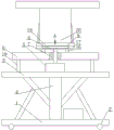 本实用新型的优点是:本实用新型结构设计合理,使用方便,便于进行移动,给使用带来了便利,显示屏能够进行转动,便于用户查看显示屏上的内容,避免死角,能够满足用户需求,适用性强。当使用本装置时,通过移动轮能够移动本装置,在使用时,用户控制显示屏工作,显示屏能够显示文字和图标,同时电动机工作,电动机的输出轴通过转动杆带动齿轮进行转动,齿轮转动带动椭圆形齿轮移动,椭圆形齿轮通过固定板能够带动显示屏进行移动并能沿齿轮进行转动,导向杆在环形槽和条形槽内移动能够对椭圆形齿轮起到导向和支撑的作用,本实用新型结构设计合理,使用方便,便于进行移动,给使用带来了便利,显示屏能够进行转动,便于用户查看显示屏上的内容,避免死角,能够满足用户需求,适用性强。