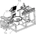 The utility model provides a capacitor welding mechanism of an assembly device for a miniature motor as shown in figures 1-3, which comprises a frame 1 and a first vibration disk 35, wherein the first vibration disk is connected with a first vibration track, the end of the first vibration track is provided with a moving section 36, and the moving section 36 is provided with a groove body (not shown) communicated with the first vibration track;