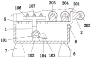 3. The environment-friendly cleaning equipment for producing the high-silicon aluminum alloy section bar according to claim 1, characterized in that: the supporting wheel (2) comprises a first support (201), a first roller (203) and a first rubber sleeve (204), the first support (201) is rotatably connected with the first roller (203) through a first pin shaft (202), and the outer wall of the first roller (203) is fixedly connected with the inner wall of the first rubber sleeve (204).