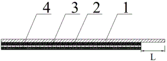 In the figure: 1-TPO carcass layer, 2-back cloth layer, 3-butyl self-adhesive layer and 4-isolating membrane.