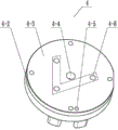 如图7~8所示,凹模4包括下垫板连接螺栓孔4-1、凹模外圆柱面4-2、凹模下表面4-3、凹模大废料出孔4-4、凹模定位销孔A24-5、凹模小废料出孔4-6,4个下垫板连接螺栓孔4-1呈圆周分布;凹模外圆柱面4-2和内圆柱面2-5配合,凹模下表面4-3和下垫板上表面2-1贴合,凹模定位销孔A24-5和凹模定位销孔A12-4通过凹模定位销3连接,下垫板连接螺栓孔4-1和凹模连接螺纹孔2-3通过凹模紧固螺钉17紧固在一起,凹模小废料出孔4-6和下垫板小废料出孔2-6对齐,凹模大废料出孔4-4和下垫板大废料出孔2-7对齐。