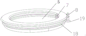 In addition, an outer gear ring 18 is arranged below the annular slide rail 6, a gear 19 is coaxially arranged at the lower end of one roller which is coaxial with the motor in the outer roller set 8, and the gear 19 is meshed with the outer gear ring 18. The stability of operation is further increased by the engagement of the gear wheel 19 with the external toothing 18.