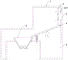 Wherein, a plurality of vibrating spring 405 overlaps respectively and establishes the outside at a plurality of gag lever post 404, and vibrating spring 405's both ends respectively with filtration 401 and broken case 1 fixed connection, filtration 401 includes the framework and sets up the wire net filter layer at framework top surface, the framework is close to shutdown mechanism 3's one end and passes through the hinge and articulate with broken case 1, through the vibrating spring 405 that is equipped with, in filtration 401 up-and-down motion process, through the elastic action of vibrating spring 405, realize filtration 401's vibration.