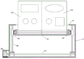 图中:1台体、2操作面板、21操作仪表区、22网孔板区、3检修门、4开口、41抽拉盖板、5障碍装置、51安装底座、511第一滑杆、512第二滑杆52第一障碍板、53第二障碍板、54滑轨、55滑台、56螺杆、57传动杆、58电机。