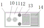 所述烟雾传感器(10)及温度传感器(12)的输出端分别与险情检测模块的输入端电性连接,所述险情检测模块的输出端与数据传输模块的输入端电性连接,所述数据传输模块的输出端分别与数据接收芯片(14)及数据处理模块的输入端电性连接,所述数据处理模块的输出端与单片机(13)的输入端电性连接,所述单片机(13)的输出端分别与警报灯(6)及蜂鸣器(9)的输入端电性连接,所述警报灯(6)、蜂鸣器(9)、烟雾传感器(10)、电板(11)、温度传感器(12)、单片机(13)及数据接收芯片(14)均与外接电源电性连接。