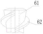安装在中段钻杆20和底端钻杆30之间的中段挤土装置60,锥体外管Ⅱ61上端的外径与外管Ⅱ21外径相对应,锥体外管Ⅱ61下端外径与外管Ⅲ31外径相对应。中段挤土叶片62的上端与螺旋挤土叶片Ⅱ22下端连接,中段挤土叶片62的下端与螺旋挤土叶片Ⅲ32的上端不连接。