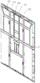 在本实施例中,如图4和图9所示,悬挂条312通过壁挂拼接件34与壁挂框311连接,壁挂拼接件34包括呈夹角设置的拼接板341和限位板342,拼接板341分别通过螺钉连接悬挂条312和壁挂框311,限位板342抵接在悬挂条312和壁挂框311的上端面。通过设置类似于L型的壁挂拼接件34,可以将悬挂条312和壁挂框311连接,同时也可以降低二者在拼接时的对位难度,拼接时,只需要将悬挂条312的端部与壁挂框311的端部相抵,悬挂条312的端部与壁挂框311的上端与限位板342相抵,然后旋拧螺钉即可实现连接。