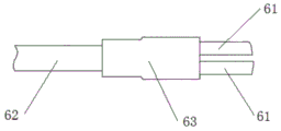这里,为了方便两个所述电极头1上的所述第一管道31和所述第二管道32的整理,则通过三通管6将冷却液进液管道和冷却液出液管道进行规整,其中,在连接使用时,两个所述电极头1上的所述第一管道31通过连接所述第一三通管的支管道61连接,所述第一三通管的主管道62与所述进水组件4/所述吸引组件连接,两个所述电极头1上的所述第二管道32通过连接所述第二三通管的支管道61连接,所述第二三通管的主管道62与所述吸引组件/所述进水组件4连接。