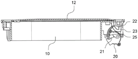 顶盖12,其可旋转地安装在底盖10的顶部后端,以用于对出入口100进行盖封或打开;a
