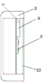 所述的电池仓5内设有控制芯片8、深紫外led灯9和电源11构成消毒灭菌机构;在电池仓5的外侧设有触摸开关7、指示灯4与控制芯片8、电源11电连接;所述的深紫外led灯9能有效得使细菌体的氨基酸、核酸、酶等遭到破坏,同时盒体内的氧电离产生臭氧,更高效快捷地加强了杀菌作用,灭菌率可达到99.9%。The