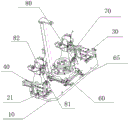 在一些实施方式中,还包括第二辅助支撑机构80,所述第二辅助支撑机构80包括第四驱动油缸81和支撑块82,所述第四驱动油缸81设置在所述底座10上并位于所述压臂74的另一端的下方,其输出端在竖直方向伸缩,所述支撑块82设置在所述第四驱动油缸81的输出端上,当所述第四驱动油缸81向上伸出时,所述支撑块82向上顶紧工件。在本实施例中,压紧定位机构70以及第二辅助支撑机构80是设置在两个夹紧机构40之间的,避免工件两侧悬臂太长,使得中间悬空部分过长而在加工钻孔时造成振动,当然,压紧定位机构70以及第二辅助支撑机构80是依据夹紧机构40夹紧的位置来定的,如果桥壳机构的悬臂朝夹紧机构40外伸出过长则可以将压紧定位机构70以及第二辅助支撑机构80设置在两个夹紧机构40外侧。