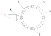 4. A water sprinkling and dust suppressing device for a stacker according to claim 1, wherein one side surface of the rotating ring (5) is provided with a tooth socket (7).