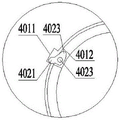 紧旋转装置4的工作原理如图8和图9所示,夹紧旋转装置4包括外圈401、传动臂402和内圈403,外圈401的外部设置有齿轮圈4011,齿轮圈4011与驱动齿轮303配合传动,外圈401的内部设置有多个传动缺口4012;内圈403与外圈401同心布置,内圈403靠近传动缺口4012的位置处设置有加紧缺口4031;传动臂402可旋转的安装在加紧缺口4031上,传动臂402由传动端4021、安装孔4022和加紧端4023组成,传动端4021设置在传动缺口4012内部,加紧端4023能够在传动端4021的拨动下围绕安装孔4022内部销轴向外伸出以加紧固定内部的电极8。The working principle of the tightening and