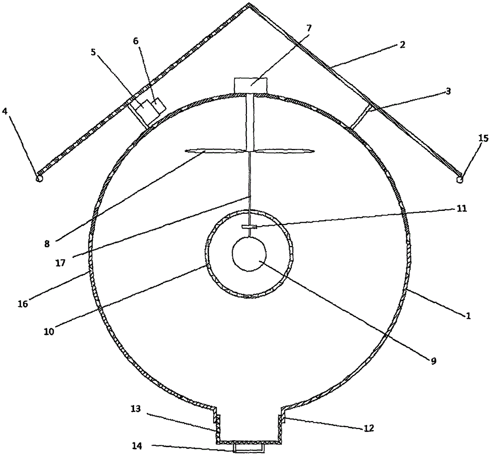 进一步的说,所述捕虫箱体1周向设有进虫孔16,且进虫孔16为外大内小设计,此设计是为了防止进到捕虫箱体1内的飞虫逃出。Furthermore, the insect trapping box 1 is provided with an
