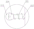 其中,所述伸缩装置10包括伸缩杆101、第二弹簧102、滚轮103和连接座104,所述伸缩杆101一端连接所述空腔3侧壁,所述伸缩杆101的另一端连接所述连接座104,所述第二弹簧102套设在所述伸缩杆101上,所述连接座104上活动连接有滚轮103。