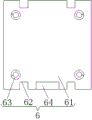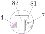 The adjusting mechanism 8 comprises a threaded sleeve 81, the surface of the threaded sleeve 81 is fixedly connected with the inner wall of the first through hole 7, the inner wall of the threaded sleeve 81 is in threaded connection with an adjusting stud 82, the surface of the adjusting stud 82 is fixedly connected with a pressing block 83, the surface of the pressing block 83 is in contact with the surface of the pushing block 64, the pushing block 64 is a trapezoidal block, and the inclined surface of the pushing block 64 is in contact with the surface of the pressing block 83.
