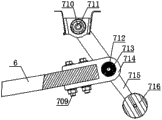 所述后卷耳包括后U型卷耳本体714,单片板簧6后端部7伸入后U型卷耳本体714内且通过紧固螺栓709将后U型卷耳本体714固定连接在单片板簧6后端部7,在后U型卷耳本体714后端部7嵌装有第一后板簧橡胶衬套713,在第一后板簧橡胶衬套713内设有铰接轴712,在铰接轴712上固定连接有摆臂715,在摆臂715的顶端设有第二后板簧橡胶衬套711,在第二后板簧橡胶衬套711内设有用于连接在车身纵梁1上的后吊耳销710;在摆臂715的底端设有配重块716。
