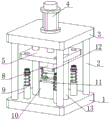 When automobile parts stamping forming in stamping die, because the impact force of drift to the mould is very big during the punching press, the mould can produce very big vibrations in the twinkling of an eye of impact, can all cause vibrations to material and mould, can cause the part machining precision to reduce to lead to machining efficiency low, promoted the processing cost.