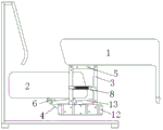 According to the sleeping habit, people usually sleep on their sides in the direction of the safe side, i.e. the backrest, so that the sleeping contact part (i.e. the bed frame) is hidden and separated from the position where the human body sits when the sofa is used (i.e. the sofa seat frame), thereby meeting the sanitary requirement of normal sleeping. On the other hand, as shown in fig. 5: the design that the width of the cushion is consistent with that of the armrests is realized, the gap 9 between the mattress and the armrests in the conventional sofa bed is eliminated, the injury of children or the damage of the mobile phone wallet falling into the gap are avoided, and the safety is improved.