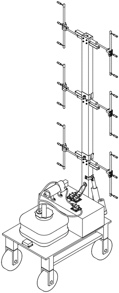 我国是一个设施农业大国,设施农业中的植保作业水平直接影响着农作物的产量,现有喷雾机械虽数量众多,但种类较少,大部分地区依然主要采用手动喷雾机械,而且这些喷雾机械大都比较简陋,精准度差,农药的利用率以及作业效率较低,难免对作业人员身体健康造成伤害,同时喷射范围不可调节,给农户的使用带来极大的不便。my country is a big country of facility agriculture. The level of plant protection operations in facility agriculture directly affects the yield of crops. Although there are a large number of existing spraying machines, there are few types. Most areas still mainly use manual spraying machines, and most of these spraying machines are relatively Simple, poor accuracy, low utilization rate of pesticides and low operation efficiency, it will inevitably cause harm to the health of operators, and the spray range cannot be adjusted, which brings great inconvenience to farmers.