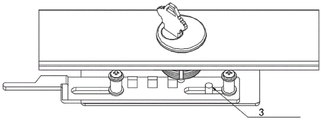 as shown in fig. 5, when the lock cylinder 11 is rotated, the lock cylinder shifting plate 10 connected to the bottom of the lock cylinder 11 is rotated to abut against between the middle upright post and the right upright post in the upright post 2-1, and the force of rotating the lock cylinder 11 is linked to the lock cylinder shifting plate 10 to push one side of the middle upright post 2-1, so that the sliding plate 2 is pushed to the left side, and the displacement of the stopper 2-2 at one end of the sliding plate 2 is realized;