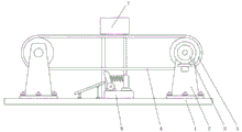 2. The utility model discloses in, utilize the right trapezoid inclined plane to go up the board of rightting of rotating the connection and comb the material of placing transmission band surface in a jumble under the elasticity of second spring and right to make the material be close to the center of conveyer belt.