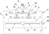The utility model discloses in, two threaded rod 10 external thread cover are equipped with two screw block 12, it is worth mentioning that, all run through on two screw block 12 be equipped with two threaded rod 10 assorted screw holes, two screw threads in the screw hole are turned to opposite, two lateral walls that screw block 12 is relative all rotate and are connected with deflector 13, two deflector 13 keep away from the one end of screw block 12 respectively with diaphragm 3 the left and right sides wall rotate to be connected, diaphragm 3's upper end front side fixedly connected with motor 5, it is required to explain, motor 5 can adopt the model to be Y315M-10's driving motor, and in external power source electric connection, for prior art, do not specifically do the repeated description, motor 5's drive shaft rotates and runs through diaphragm 3 and fixed mounting has milling cutter 6.