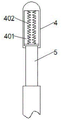Further, when spring 402 was in initial condition, the rightmost side of cleaning board 6 was just in time hugged closely the upper right side of stock chest, and when cleaning board 6 removed to the rightmost side of stock chest, spring 402 promoted down connecting rod 5 and removed the below of spout 401 for cleaning board 6 extends and cleans each side of stock chest fast, reduces clean dead angle.