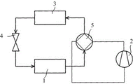 图1中:1-蒸发器、2-压缩机、3-冷凝器、4-膨胀阀,5-四通换向阀;