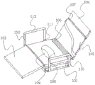 进一步地,所述第二连接部106的长度长于所述第一连接部105和所述第三连接部107的长度;所述连接底座101的顶部设置有缓冲垫113;所述第二折叠板103的外表面设置有坐垫层(图中未示出)。Further, the length of the