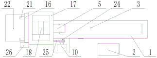 图中:1-中空槽体、2-控制箱、3-料槽口、4-挡板、5-下料管、6-回收箱、7-刮板、8-检测相机、9-辊轴、10-驱动电机、11-齿轮、12-链条、13-底带、14-挡带、15-安装槽、16-支架、17-料斗、18-驱动轴、19-驱动轮组、20-驱动片、21-滑轨、22-平台、23-驱动气缸、24-主动轮、25-皮带、26-皮带盒。