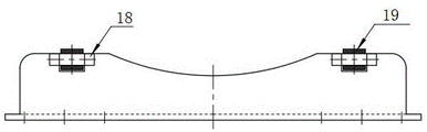 The components in the figure: 1. the chain tensioner comprises a chain tensioner, 2, a chain, 3, a first driven chain wheel, 4, a frame, 5, a second driven chain wheel, 6, a fuel guide plate, 7, a driving chain, 8, a speed reducer, 9, a scraper chain bracket, 10, a travel switch assembly, 11, a first scraper, 12, a frame fixing plate, 13, an end iron plate, 14, a speed reducer chain wheel, 15, a second scraper, 16, a scraper part, 17, a groove, 18, a shaft and 19, and a shaft sleeve.