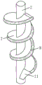 螺旋通道3包括呈螺旋状连接在主轴2外侧的螺旋叶片7;螺旋叶片7远离主轴2的周边侧面向上设置有挡料板8;挡料板8的外壁上间隔设置有多个刮刷13;多个刮刷之间均等间距分布;刮刷13均贴着集尘筒1的内壁;