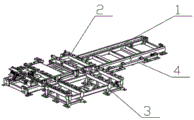 In the field of automatic production, the demand of collinearly producing like products with multiple specifications to save production equipment resources and fields is more and more obvious. The flexible growth promotion and intelligent line body layout scheme and the production process are continuously improved and perfected. The utility model discloses mainly weld the arbitrary occasion that dress automation line's actual demand evolves but its implementation mode can be borrowed in view of any needs special frock or the automatic quick replacement of material by white automobile body. In the automobile welding production process, a plurality of enterprises need to produce various different automobile models on a single production line, one production line needs different tool fixtures to clamp and finish welding production according to different automobile models, different sizes of workpieces are arranged at sub-assembly stations, loading requirements are different, and other various factors are different, the size and weight difference of the tool fixtures is large, and the flexibility of the tool fixture body is difficult to realize technically and financially in actual project application. Therefore, at present, to realize flexible multi-vehicle type mixed line production, multiple work fixtures must be switched. In addition, due to the fact that the production rhythm requirement of the automobile body welding production line and the market requirement for selecting any mixed line production mode or small-batch switching production mode are higher and higher, most of producers give up storing tools in a storage place far away from a production area, the traditional tool switching mode that turnover logistics equipment is transported and installed according to needs is utilized, the storage position of the tools is directly arranged on the edge of the production line, the production line is directly cut into when needed, the tools on the production line are replaced, and therefore switching time is saved, and precious production time is obtained.